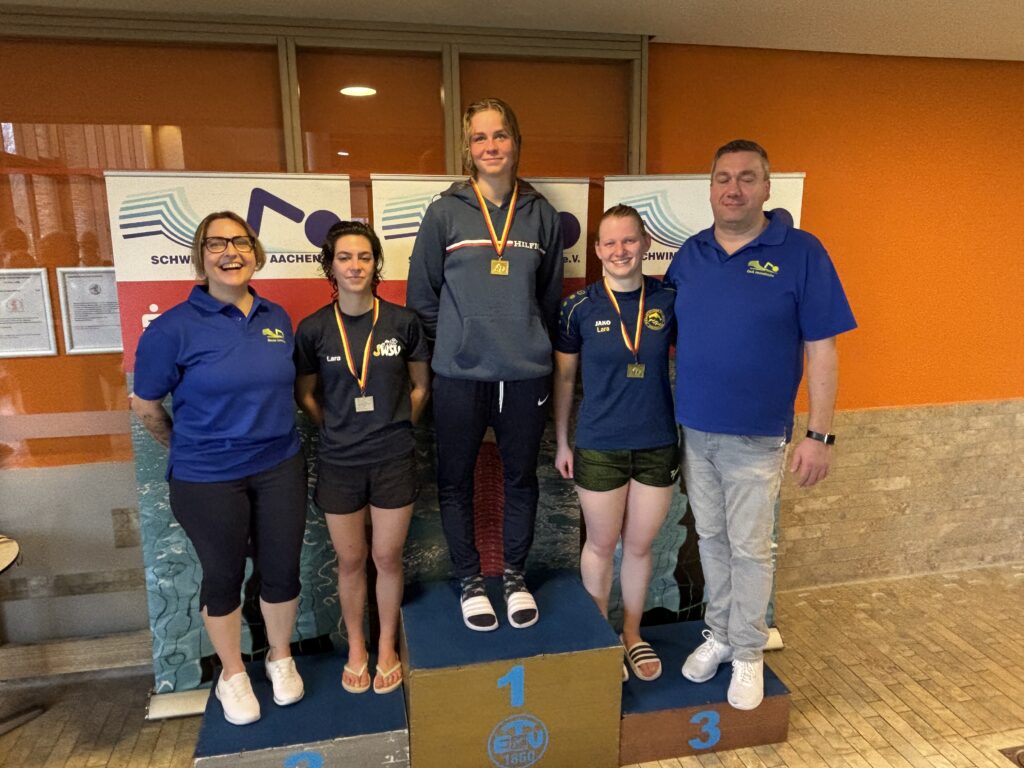 Lara Vroels (Wfr. Delphin Eschweiler) unterbot ihren eigenen Vereinsrekord über die 800m Freistil und erzielte in einer Zeit von 09:58,48min den 3. Platz in der offenen Klasse.