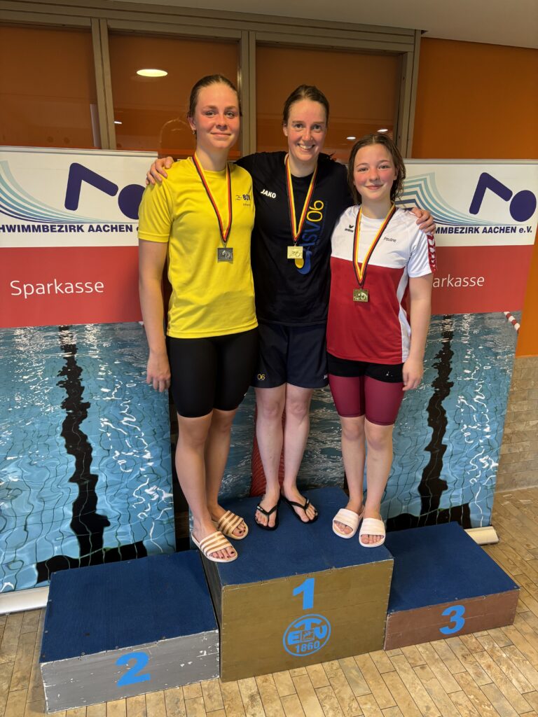 Sabine Zimmermann (Aachener SV06) wurde in der AK 40 über die 400m Lagen und 800m Freistil weiblich, Bezirksklassenaltersmeisterin AK 40.