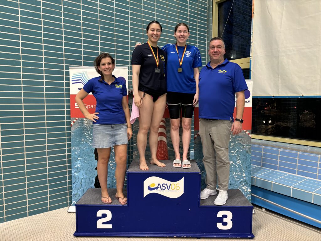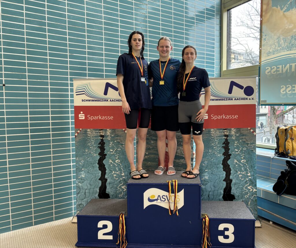 Die Siegerehrungen der Bezirksmeister und Bezirksmeisterinnen der offen Klassen wurden durchgeführt von der Vorsitzenden des SB Aachen Frau Stephanie Preetz und dem Fachwart Schwimmen Herr Dirk Heindrichs.