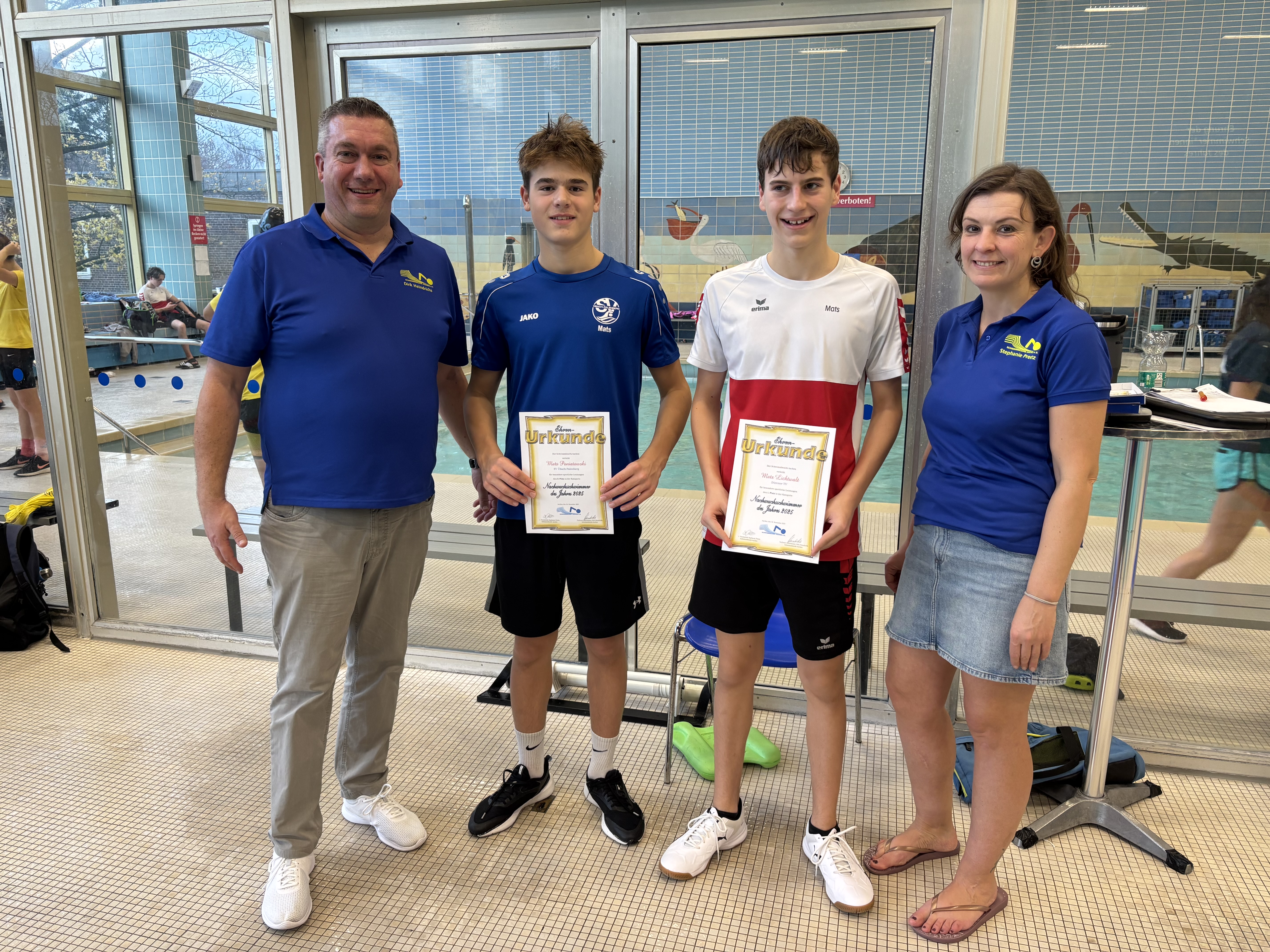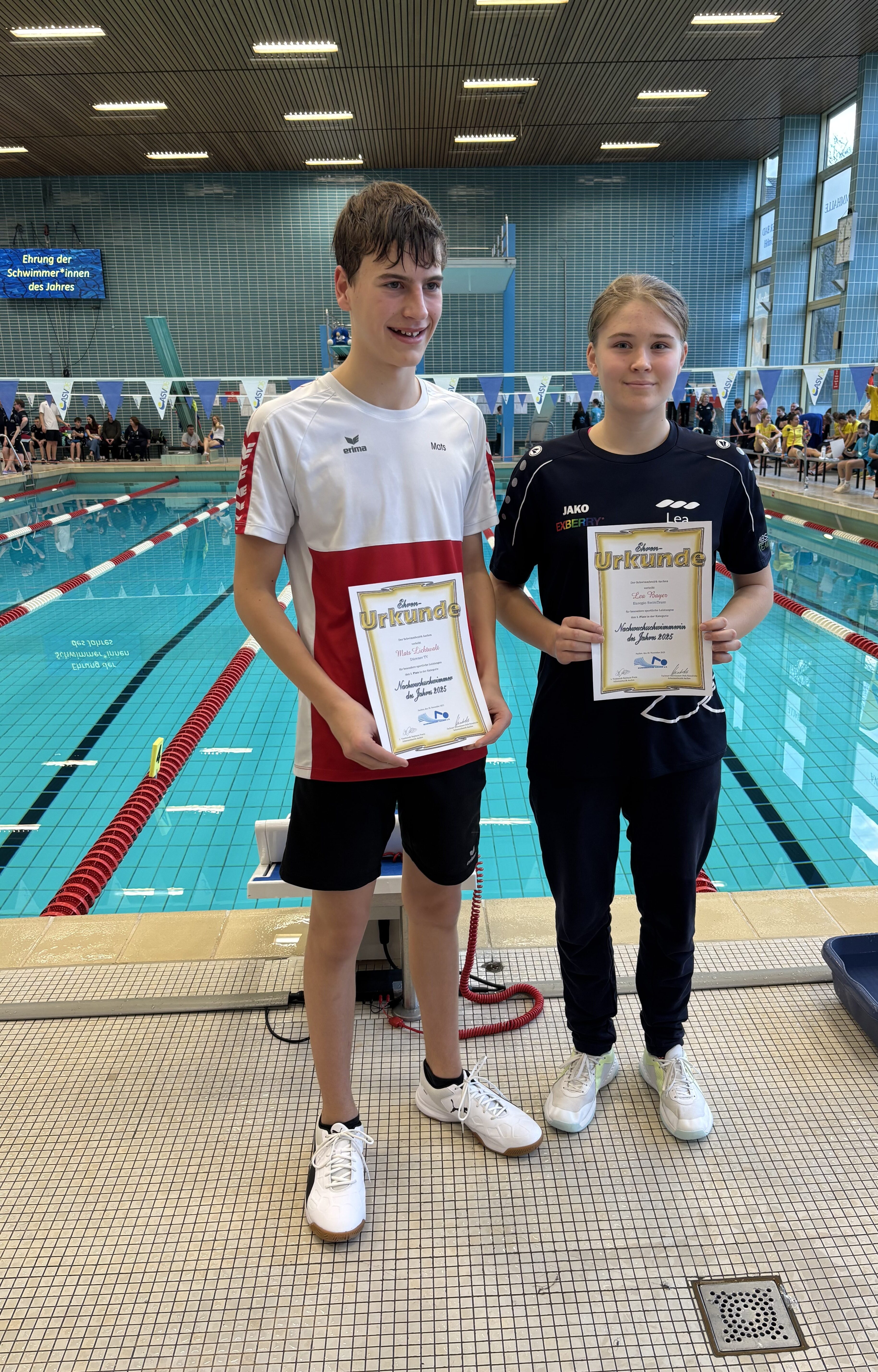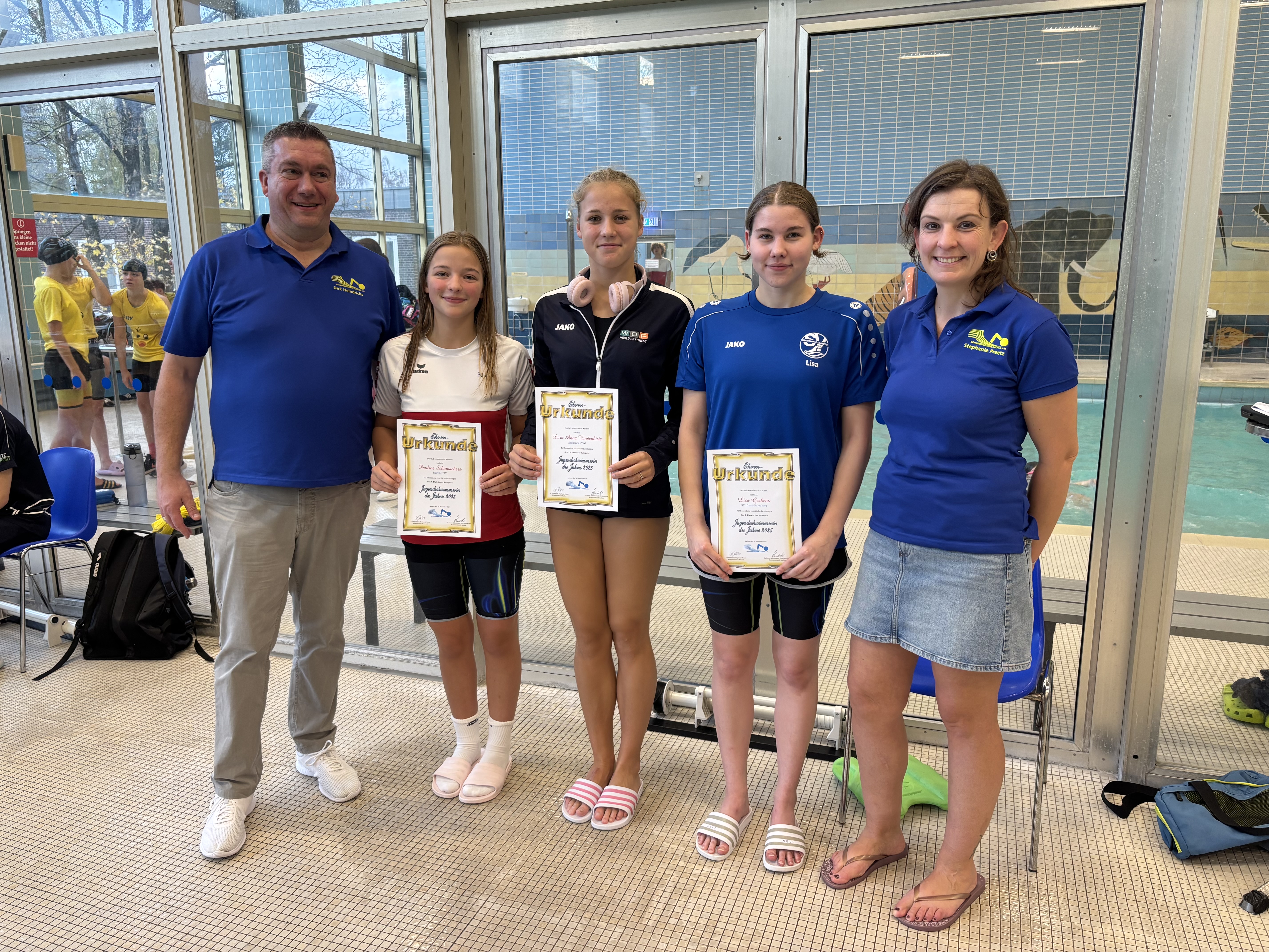 Auf der Bezirks-Kurzbahnmeisterschaft 2025 in Aachen wurden die folgende Schwimmer und Schwimmerinnen geehrt: